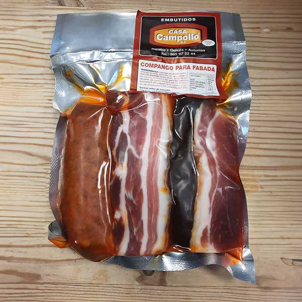 Chorizo ahumado, morcilla ahumada, panceta y lacón.